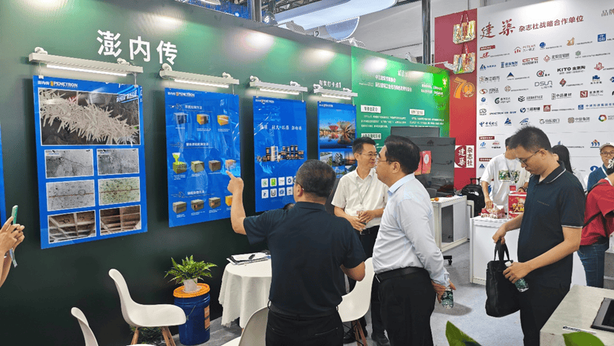 北京澎內(nèi)傳公司展出了全球領(lǐng)先的混凝土滲透結(jié)晶自愈合技術(shù)以及系統(tǒng)產(chǎn)品,展板上生動(dòng)形象的展現(xiàn)出滲透結(jié)晶的技術(shù)原理、電鏡下的結(jié)晶形貌和實(shí)效工程照片等;實(shí)物水池模型與試塊直觀地看到結(jié)晶自愈合后的功效。澎內(nèi)傳先進(jìn)的滲透結(jié)晶科技不僅能從根本上解決混凝土結(jié)構(gòu)的滲漏水頑疾,還能提高混凝土整體的耐久性,延長(zhǎng)結(jié)構(gòu)的使用壽命60年。產(chǎn)品低碳環(huán)保,為我國(guó)造就高質(zhì)量建筑和可持續(xù)發(fā)展的目標(biāo)提供堅(jiān)實(shí)的技術(shù)基礎(chǔ)和科學(xué)的安全保障,更好的滿(mǎn)足人們對(duì)好房子的需求。